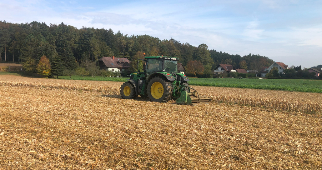 Seitdem letzten Jahr gilt eine Mindestbodenbedeckung für Acker- und Dauerkulturflächen. Diese Mindestbodenbedeckung kann erreicht werden, indem bspw. das Maisstroh gehäckselt und über den Winter am Feld belassen wird. Das Maisstroh kann nach dem häckseln auch gegrubbert werden. Beide Varianten sind erlaubt. Damit ist es möglich, dass auf dem gehäckselten Maisstroh eine Kalkung nachgeholt werden kann. Kalkungsmaßnahmen, die bspw. aufgrund von schlechter Befahrbarkeit verschoben wurden, können nun problemlos durchgeführt werden.